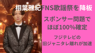 芸能相葉雅紀FNS歌謡祭を降板「スポンサー問題でほぼ100%確定」 3月5日の「ピンズバNEWS」にて、嵐相葉雅紀さんのFNS歌謡祭の司会降板がほぼ100%決まったと報じられています。嵐の相葉雅紀2019年から務めたFNS歌謡祭のMCを降板?嵐の相葉雅紀さんは2019年以降、毎年12月放送の大型音楽特番『F...2024.03.06芸能