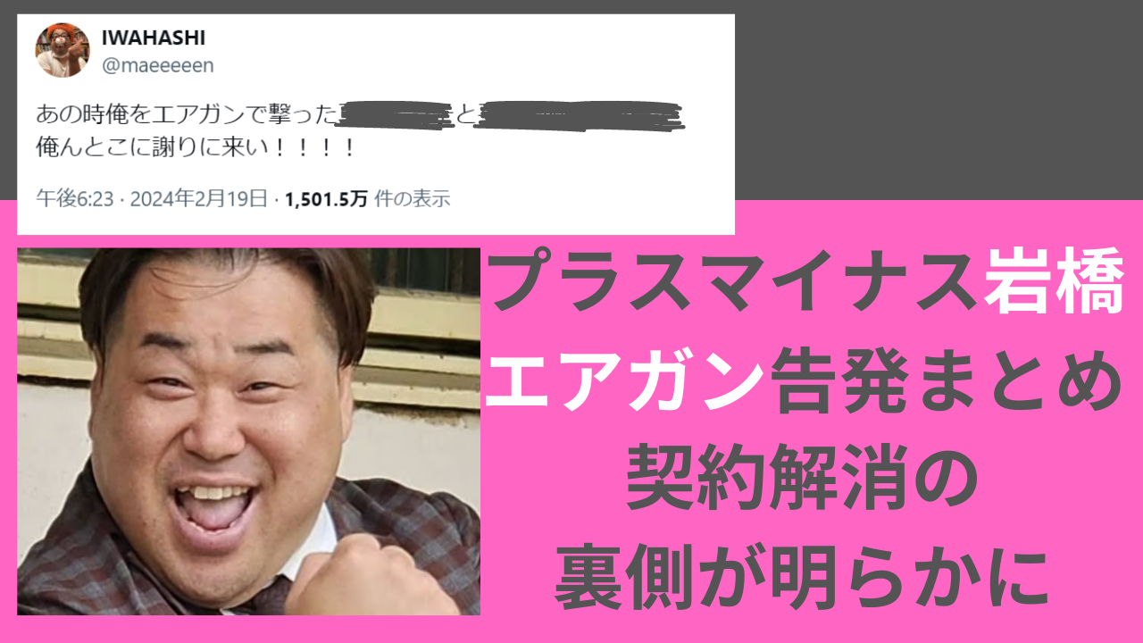 岩橋良昌さんのXでの告発はこれまでも多々行われてきていますが、今回のエアガン告発がプラスマイナス解散の主な原因であることは間違いありません。本記事ではエアガン告発からプラスマイナスが解散するに至るまでを詳しくまとめました。